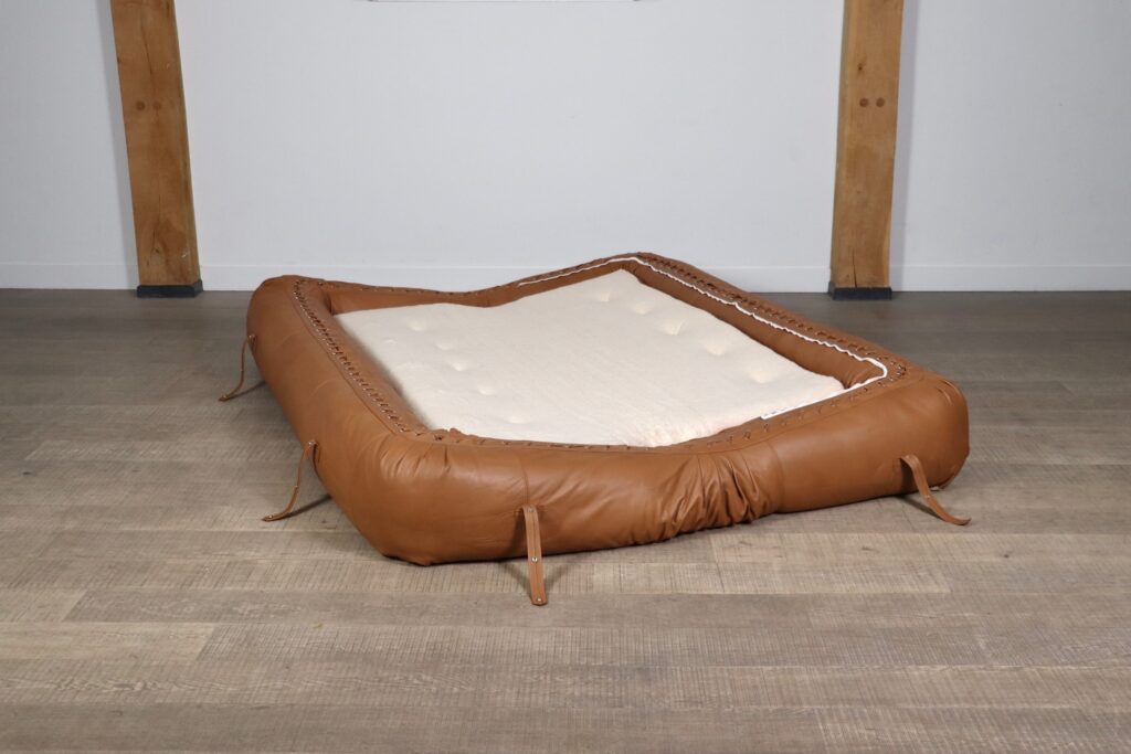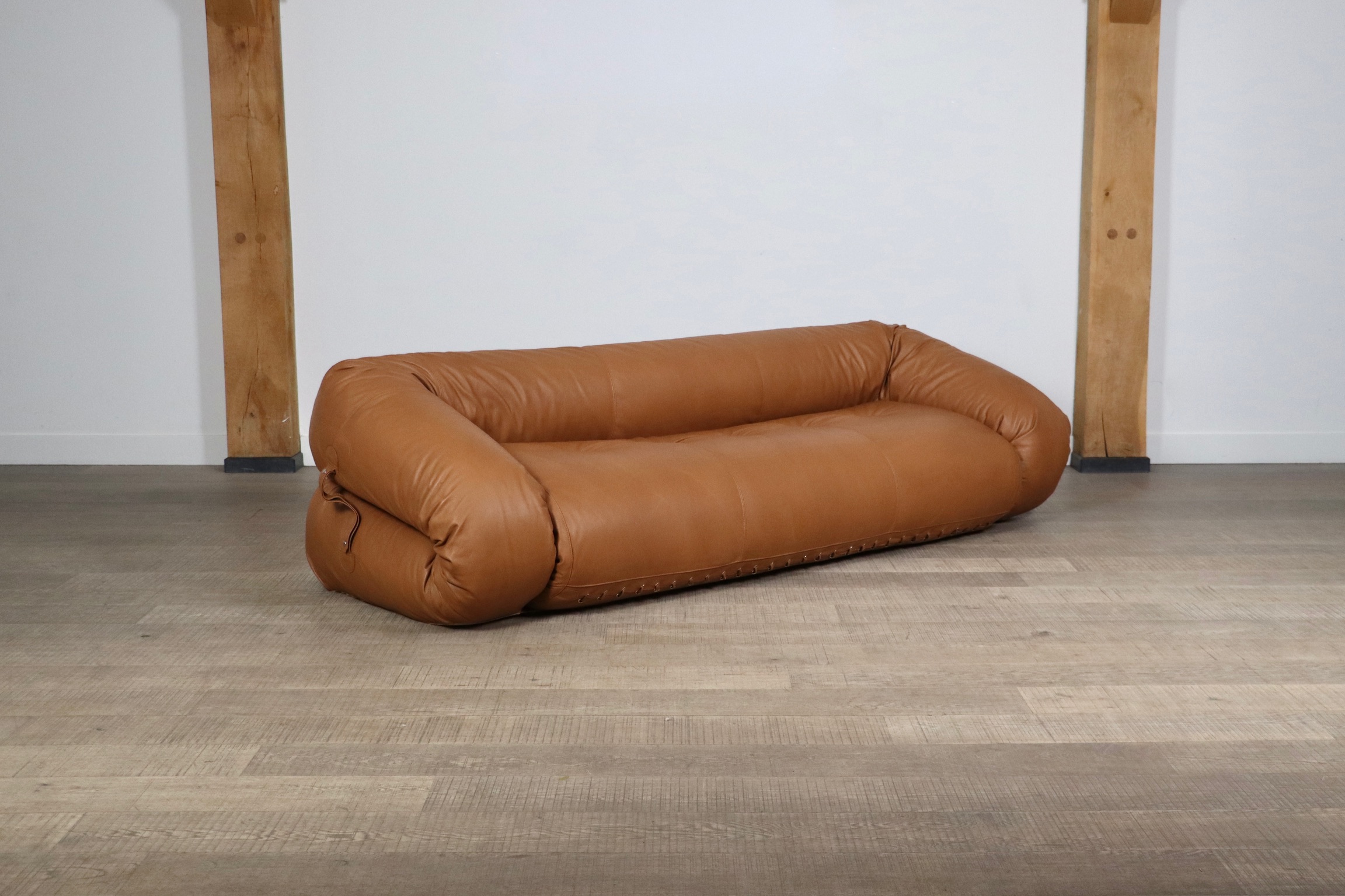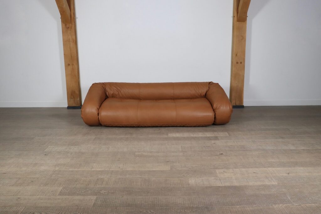 Anfibio sofa bed in cognac leather by Alessandro Becchi for Giovanetti Collezione Italy 1971