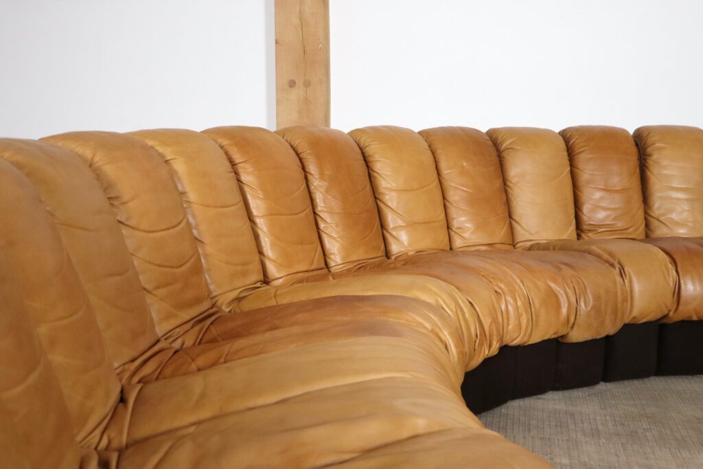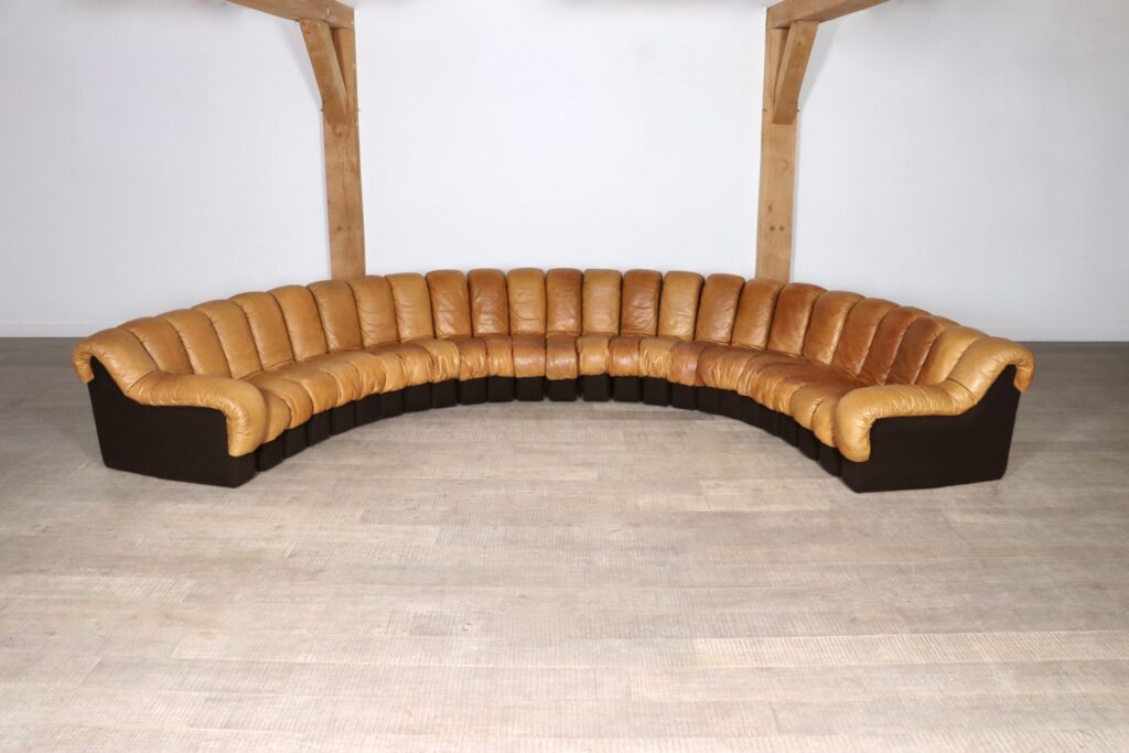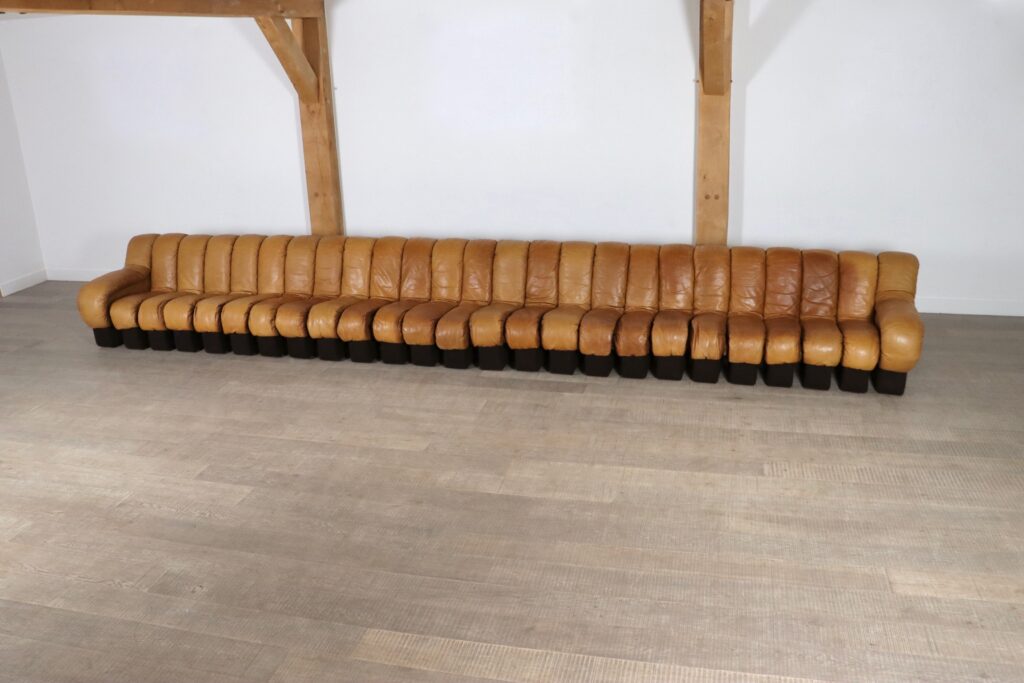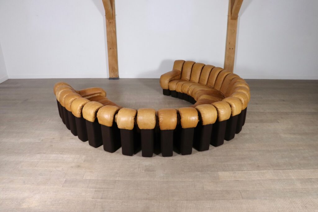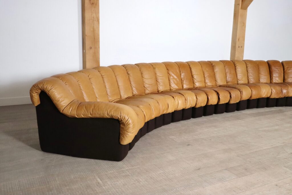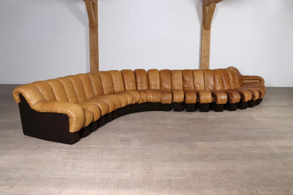 An incredible edition of De Sede’s iconic design, in an extraordinary large version. Create your own sculptural shapes with ease in any form you wish with this ‘snake’ like sofa!