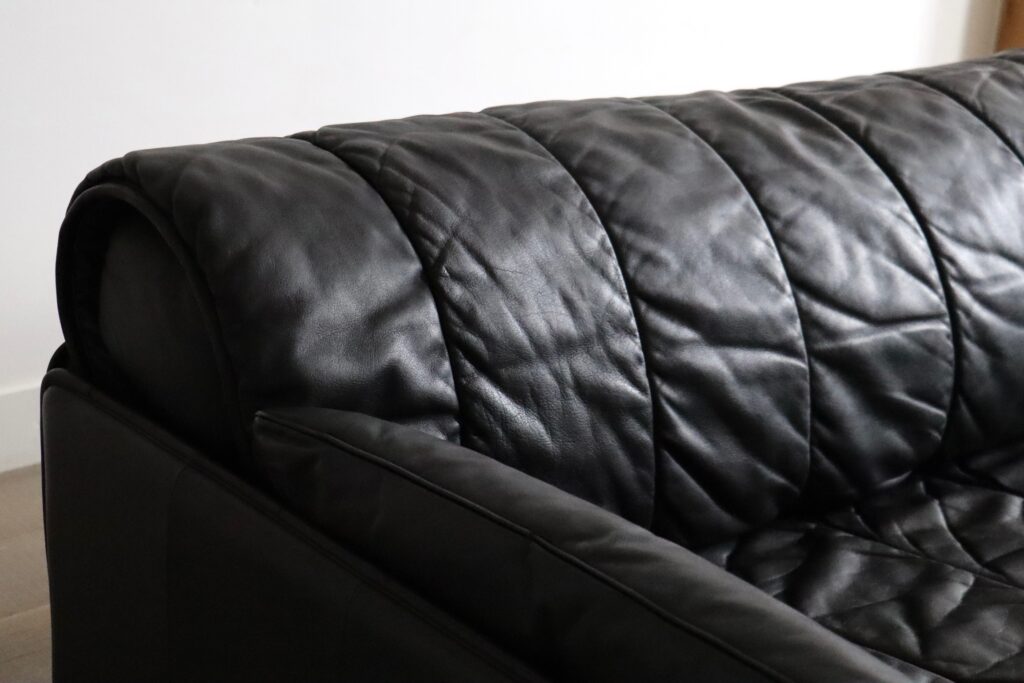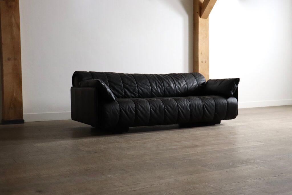 A fine example of De Sede’s impeccable craftsmanship, with the use of only high quality materials and refined stitching. This three seater sofa is made with the highest quality leather and a steel base for strenght.