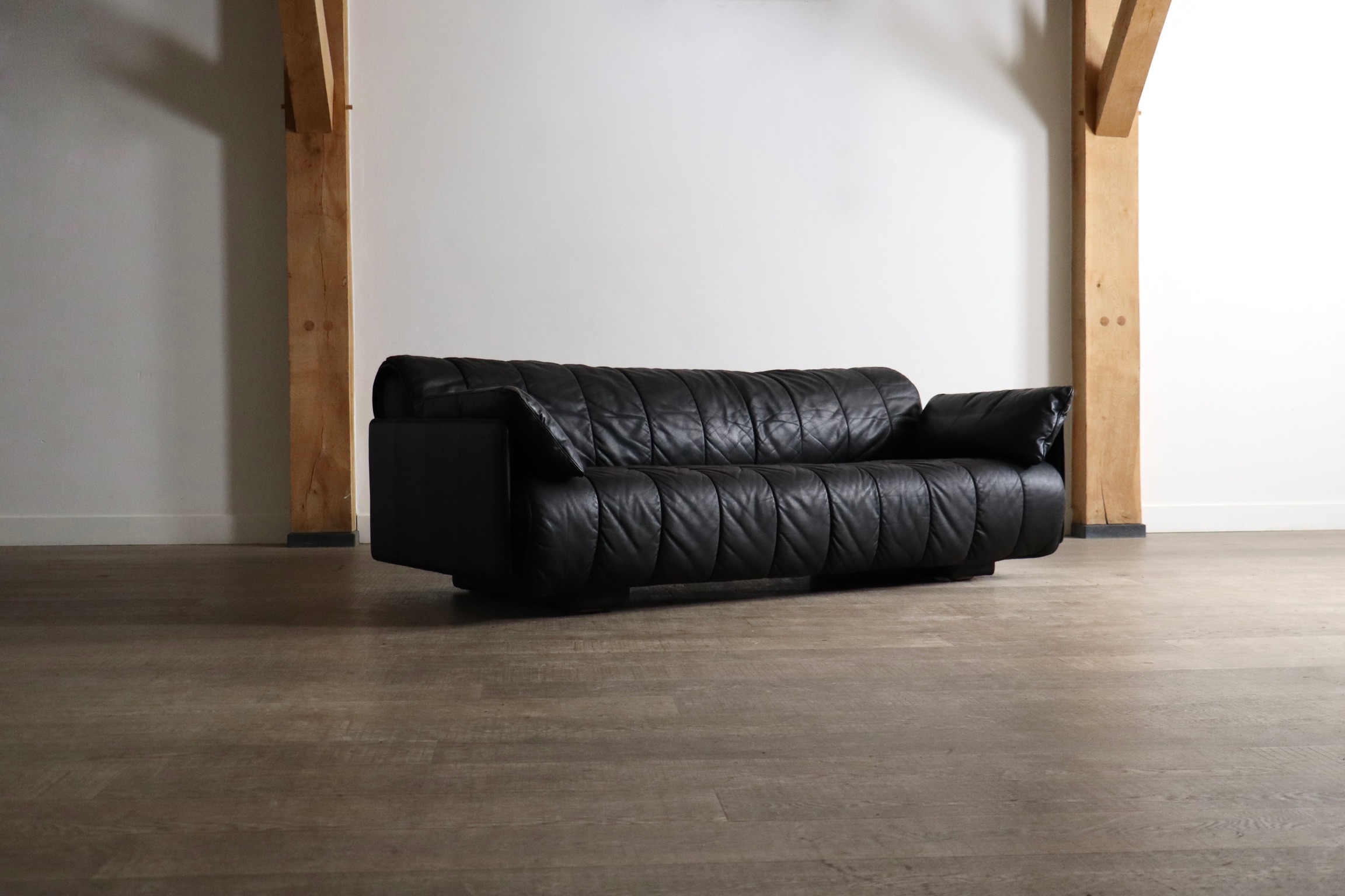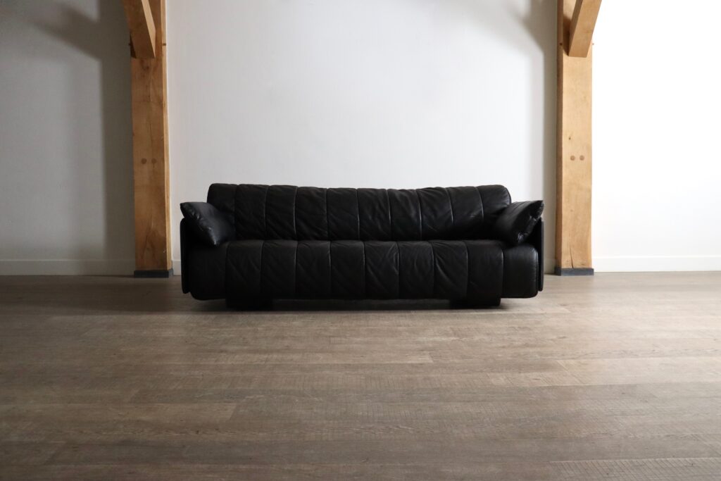 Beautiful DS-69 black leather three seater sofa, which can convert to a large double bed, designed and manufactured by De Sede, Switzerland 1970s.