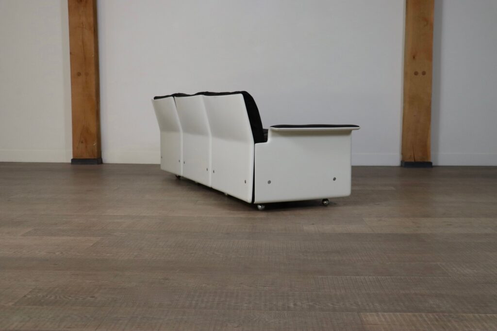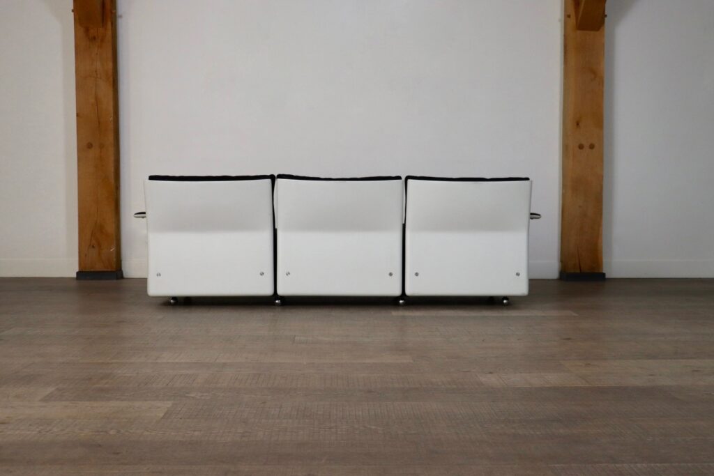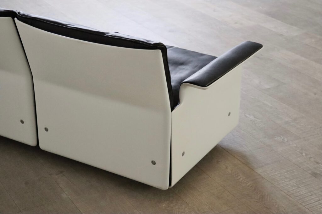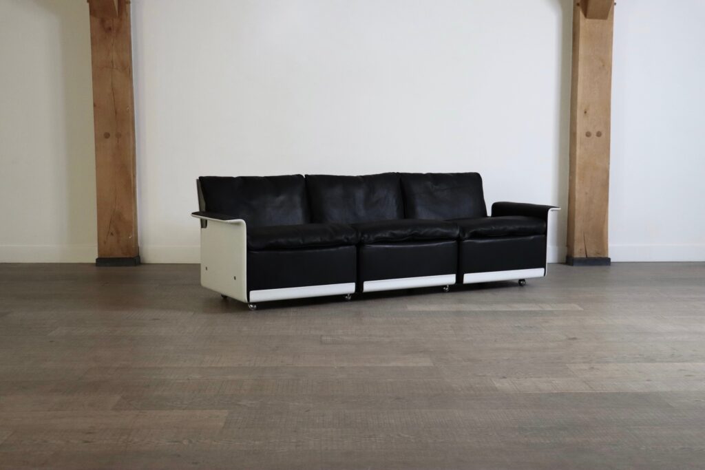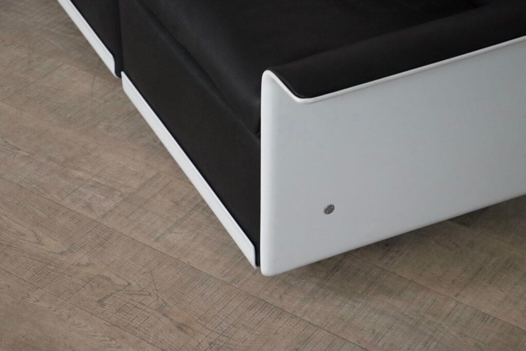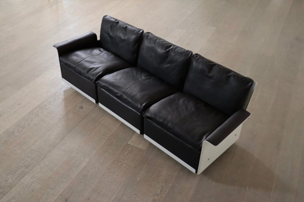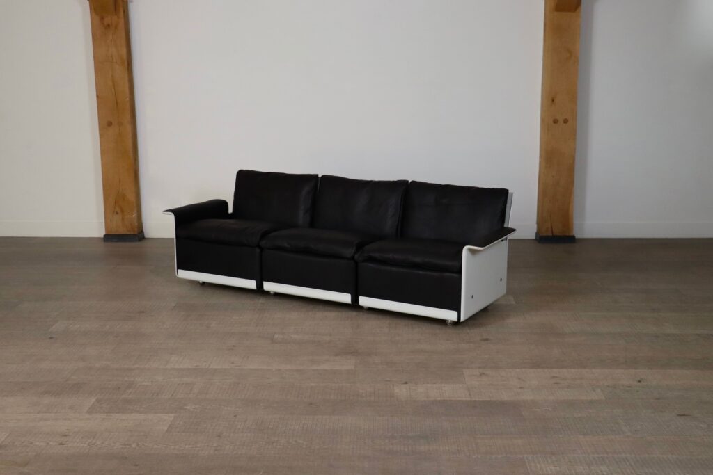 Amazing model 620 three seater sofa in black leather with white outer shell by Dieter Rams for Vitsoe, Germany 1980s.