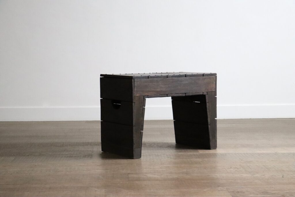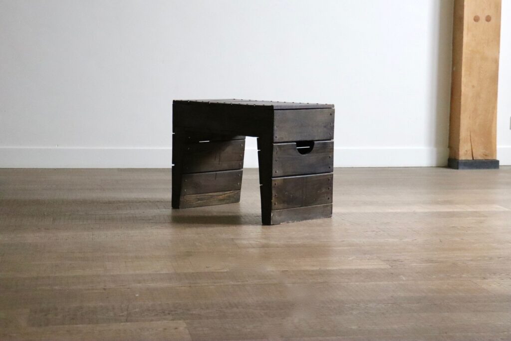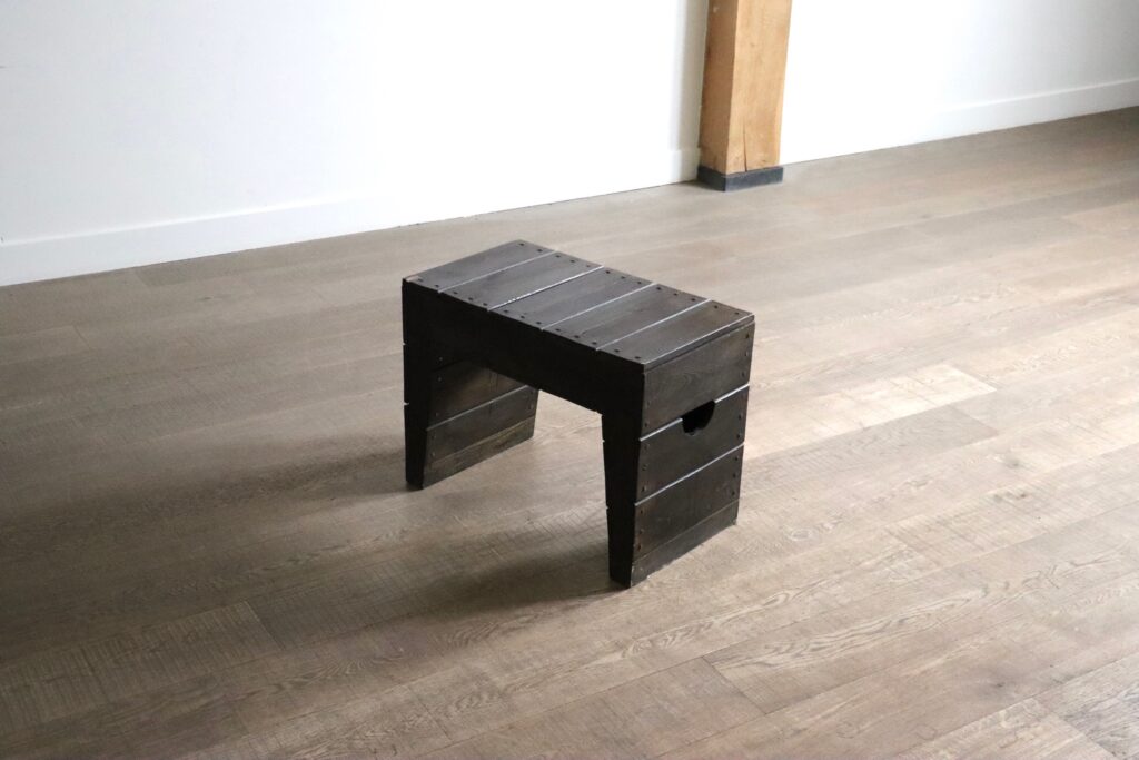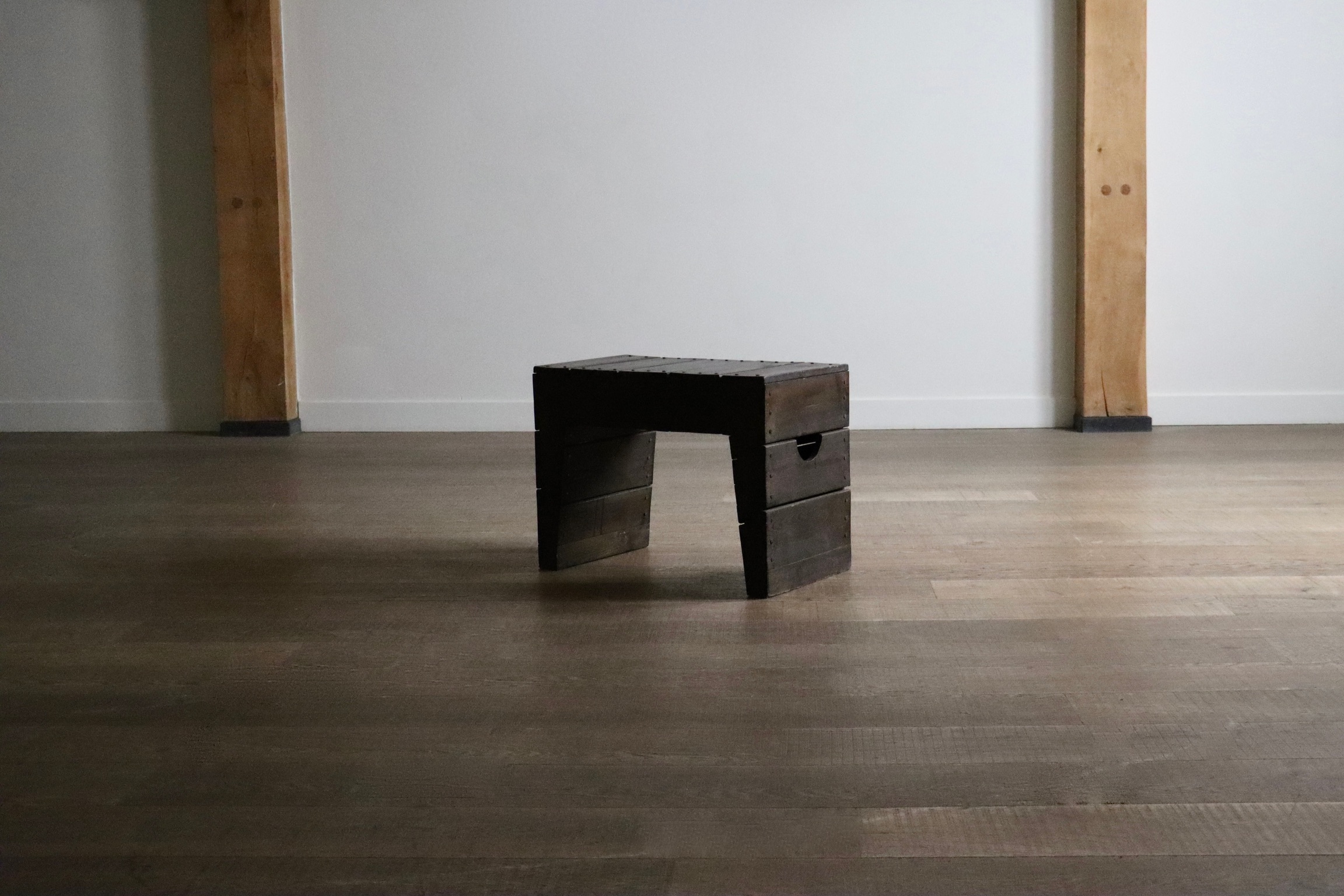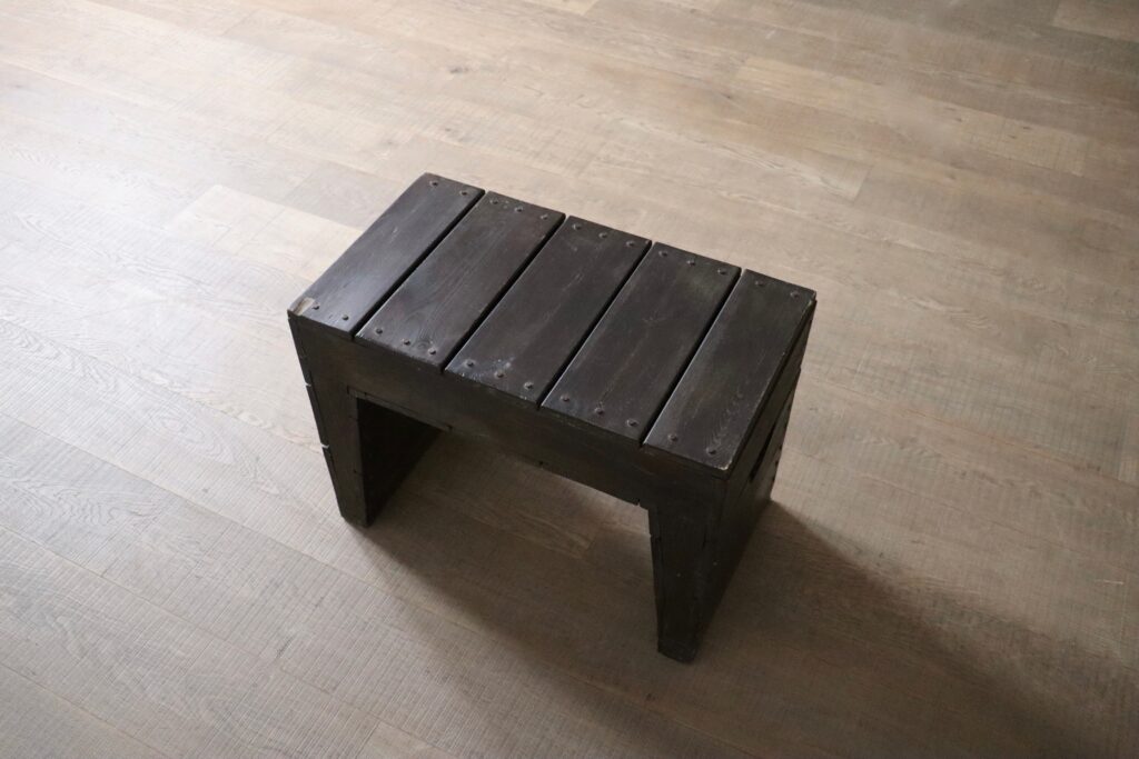 The stool is made of stained oak wood, crafted in the iconic “Bossche School” design style, which is a rare find of (Dutch) design history! The wooden panels are connected by the recognisable round copper nails.