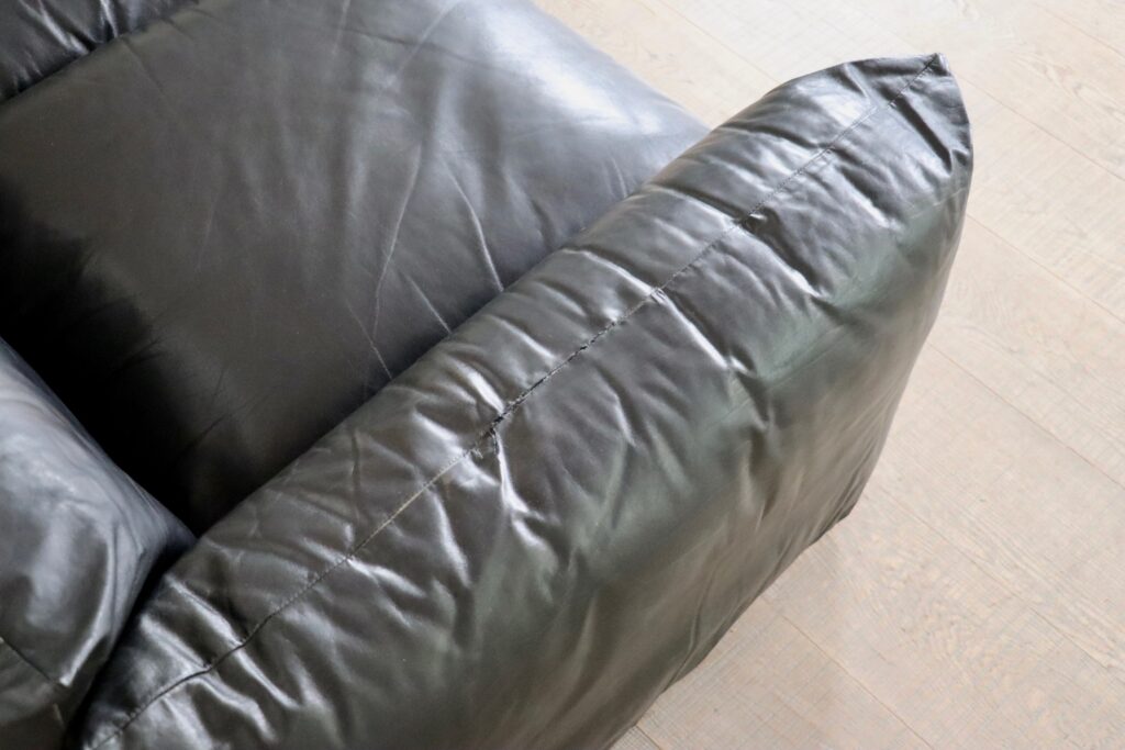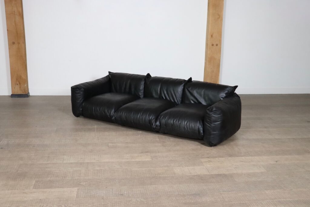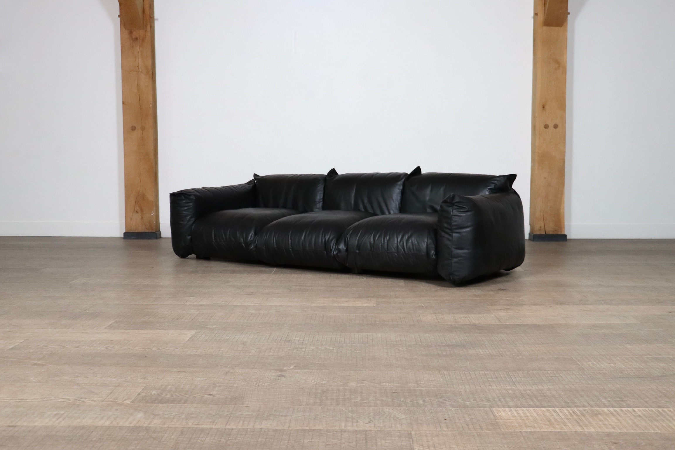 First edition Mario Marenco sofa in black leather for arflex, 1970s