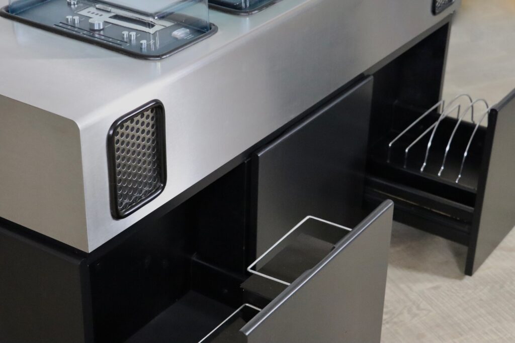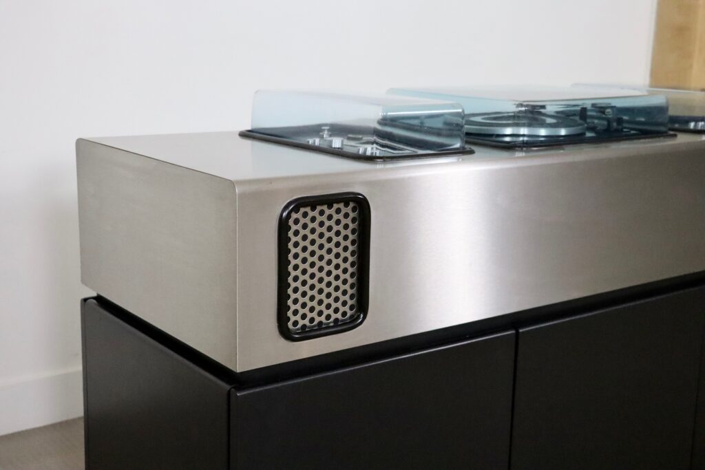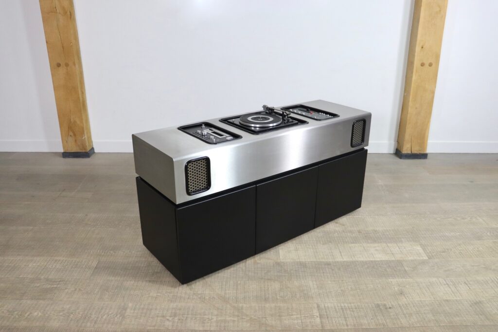 Incredibly rare radio bar ‘Batman’ by Adalberto Dal Lago & Adam Tihany for Guiseppe Rossi Di Albizzate, 1970s. This incredible design piece will be the eyecatcher of any interior! This piece comes with a cassette player, 8-track player, LP player, radio and added Bluetooth connector, which are all professionally checked and revised. The best part. is: it also has a working refrigerator to store your favourite drinks! Listen to your best music with a drink in style. Now is your chance to own this extremely rare high end hifi piece and elevate your space!