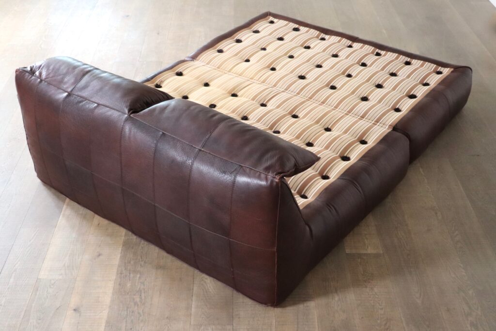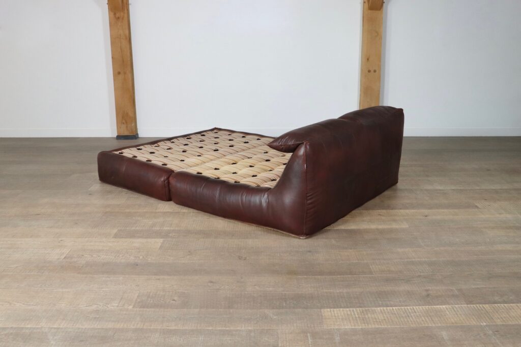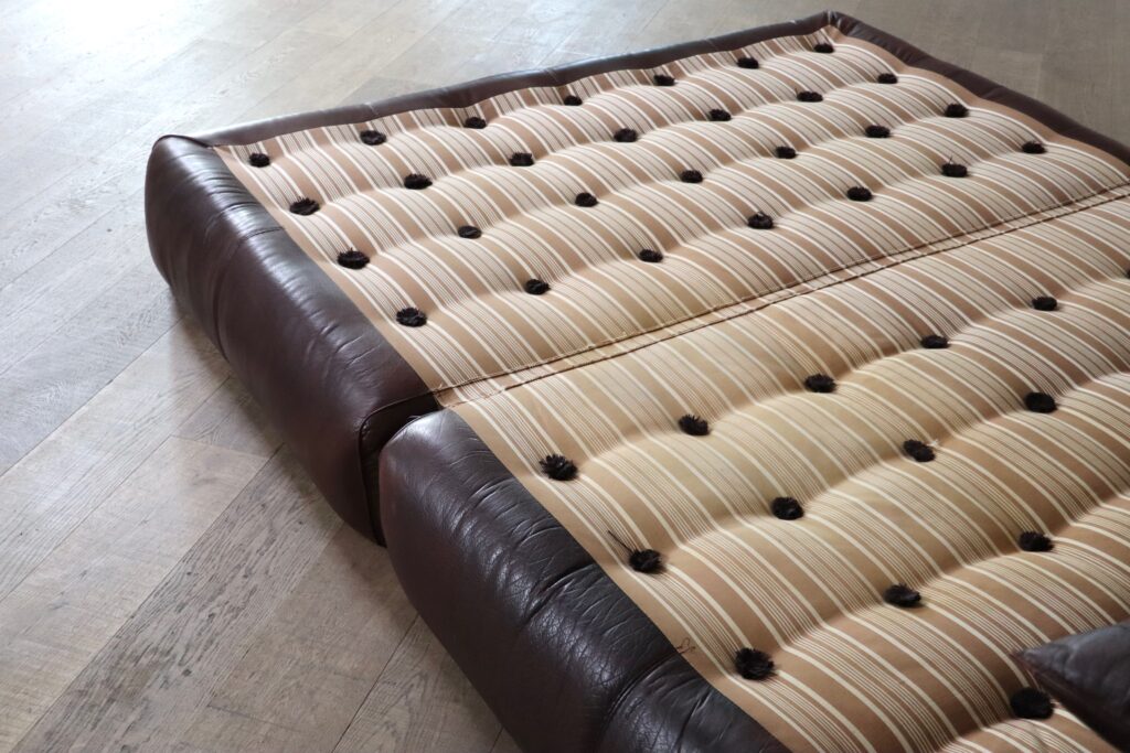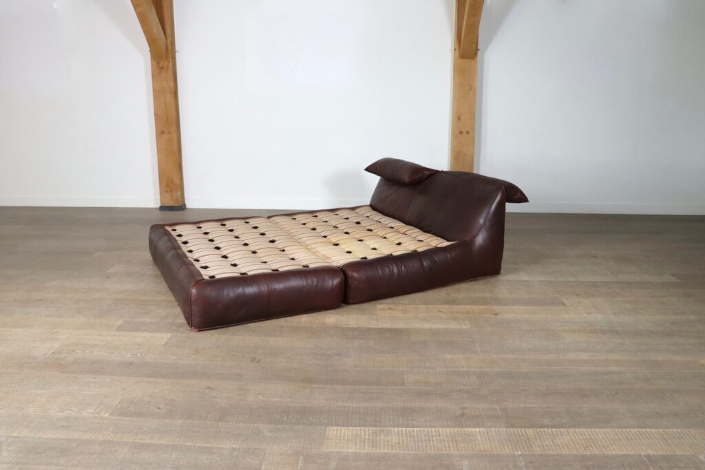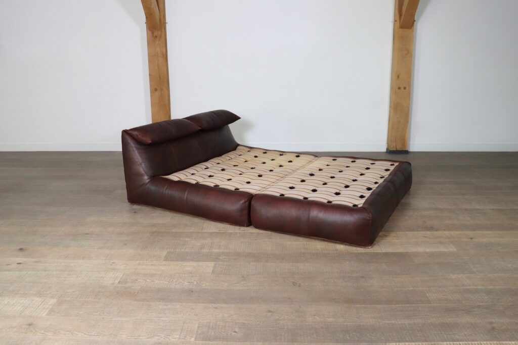 The Iconic “Le Bambole” collection by Mario Bellini also features this amazing kingsize foldable bed: “The Bambolettone”. The bed can be used as a daybed, lounge sofa, dormeuse, and ofcourse as a bed, which it was originally designed for. The ‘Le Bambole’ collection was awarded the 1979 ‘Compasso d’Oro’ award. An example of Le Bambole is included in MoMA’s permanent collection. The incredible and original buffalo leather gives the bed a luxurious and warm feeling which will last a generation more!