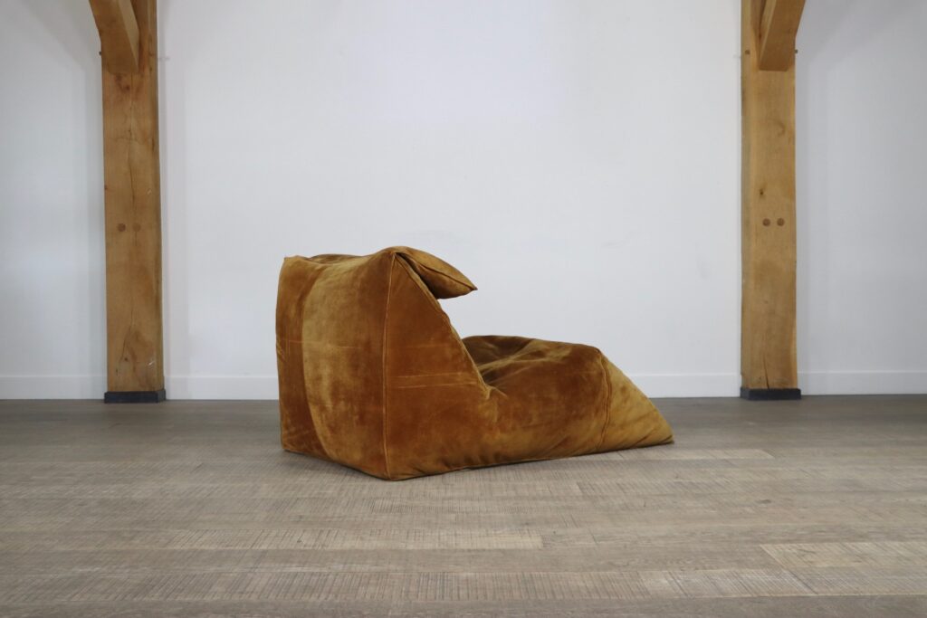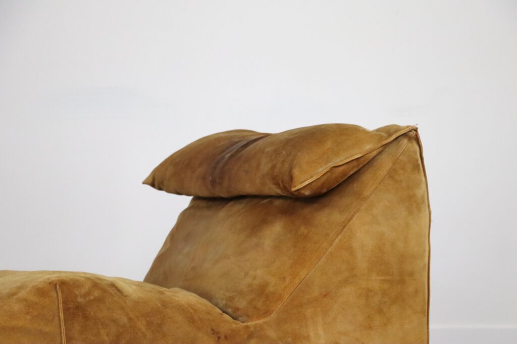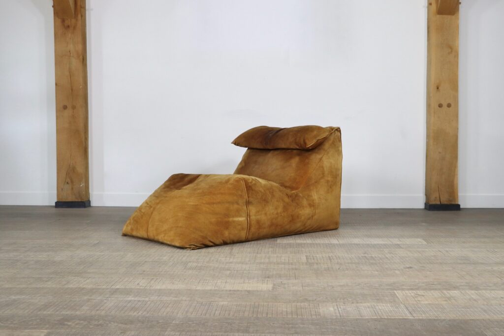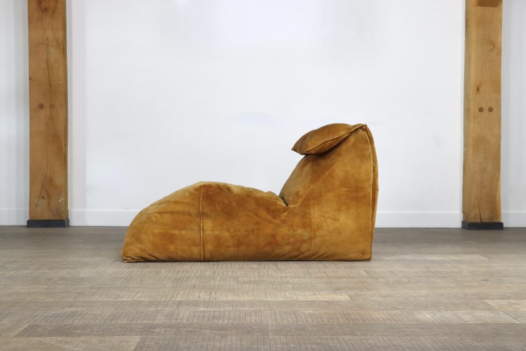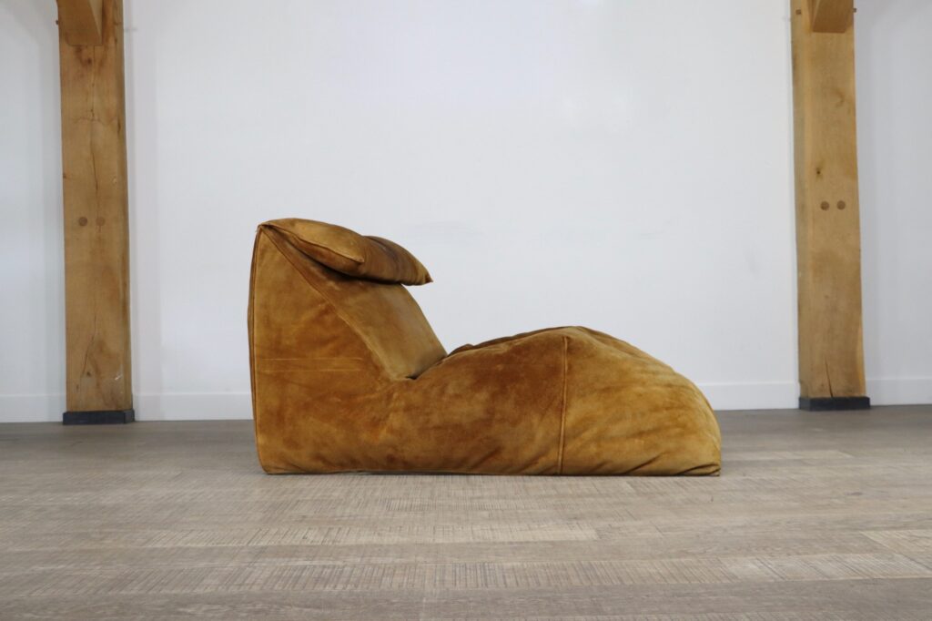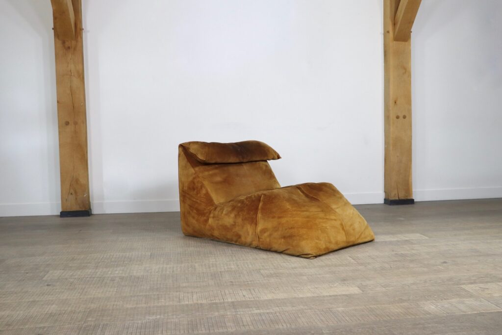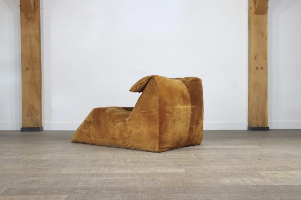 The iconic “Le Bambole” chaise longue, designed by Mario Bellini for B&B Italia in the 1970s. This rare early edition lounge still has its original cognac suede which has obtained a stunning patina over the years. Besides the outstanding comfort were Bellini’s designs are famous for, this iconic lounge chair is also known for its special looks. The ‘Le Bambole’ collection was awarded the 1979 ‘Compasso d’Oro’ award. An example of Le Bambole is included in MoMA’s permanent collection.
