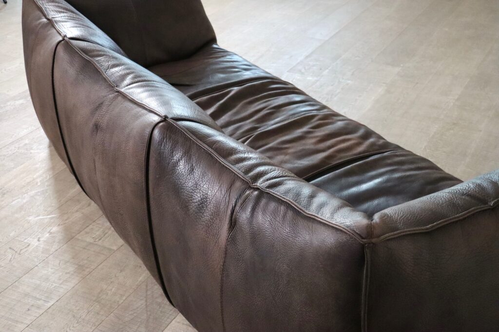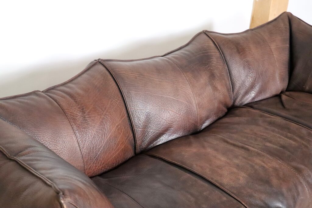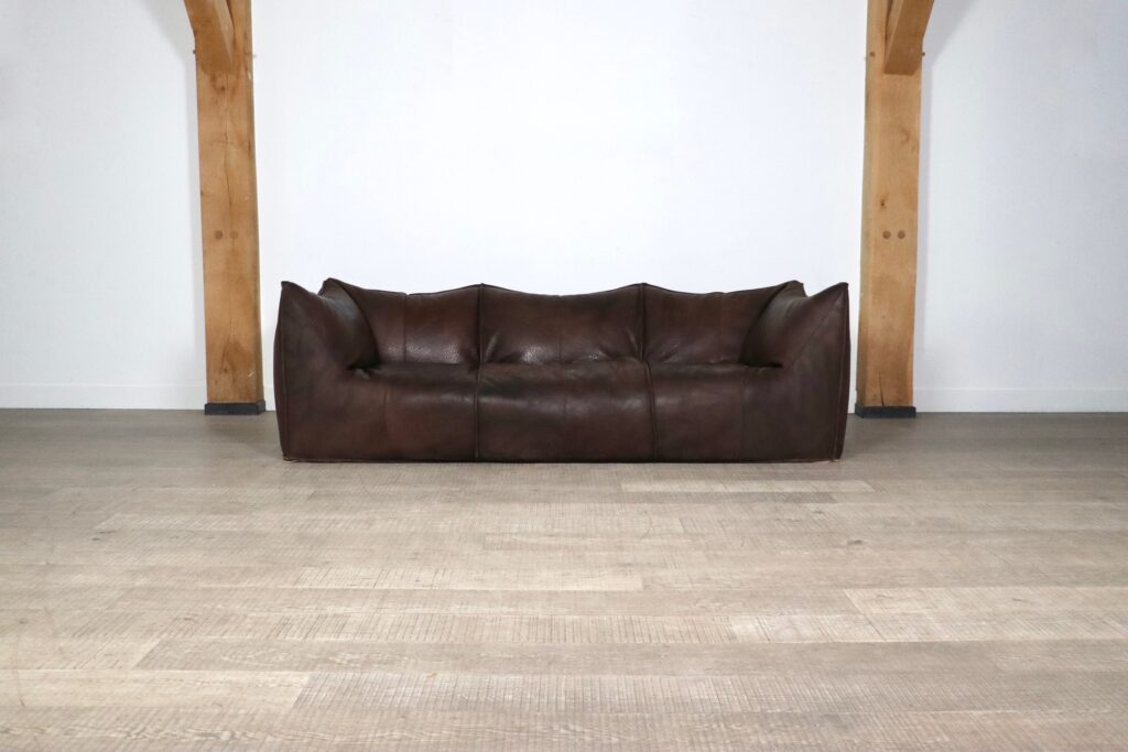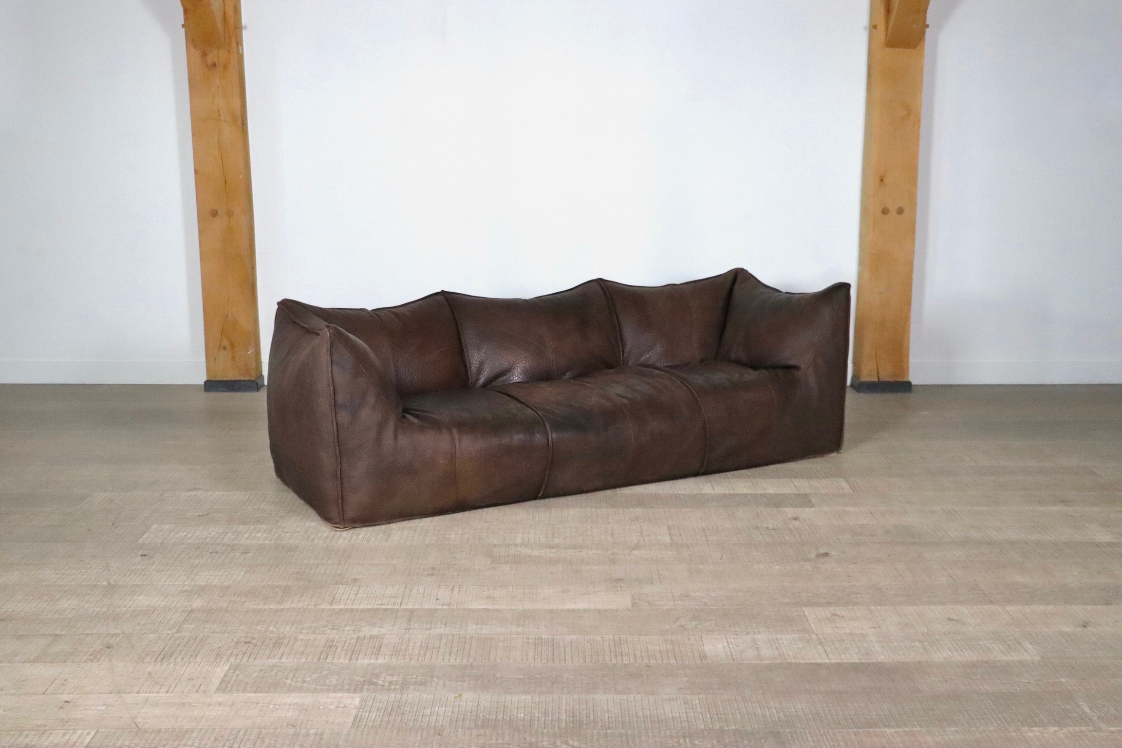 Le Bambole three seater sofa in Brown Buffalo leather by Mario Bellini for B&B Italia, 1970s