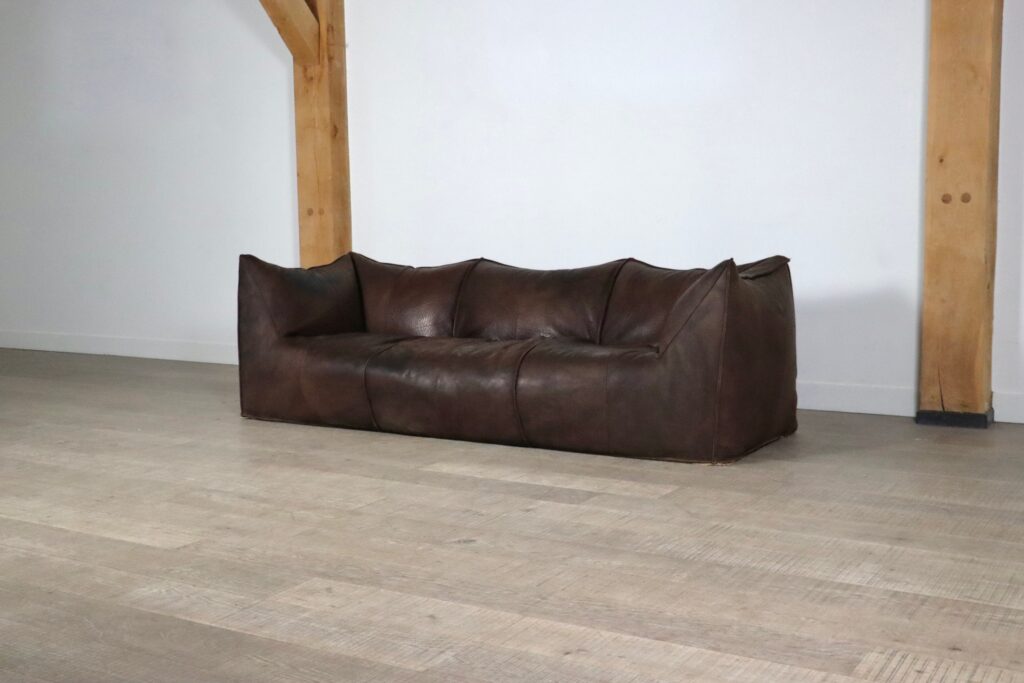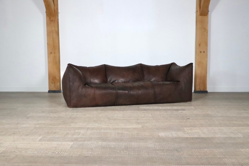 Fantastic “Le Bambole” three seater sofa in original buffalo neck leather designed by Mario Bellini for B & B Italia in the 1970s. With the original thick, almost indestructible buffalo neck leather with a nice patina. Besides the outstanding comfort this iconic sofa is famous for its timeless looks. The ‘Le Bambole’ collection was awarded the 1979 ‘Compasso d’Oro’ award. An example of Le Bambole is included in MoMA’s permanent collection. This three seater version from the seventies has become a rare find in this original condition. Elevate your seating area with this exceptional sofa!