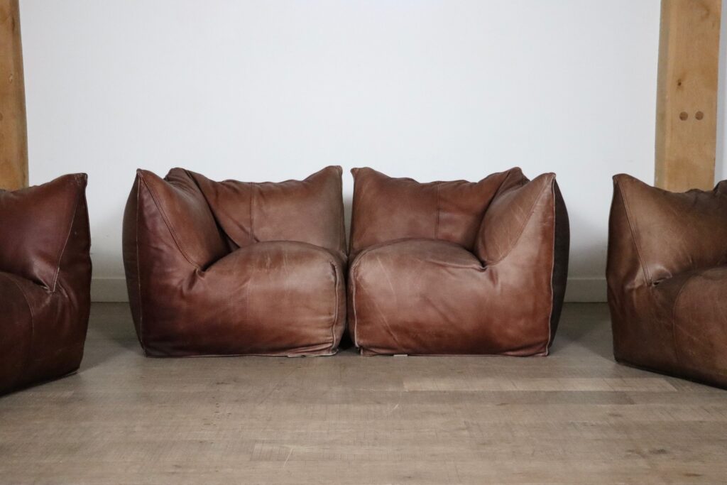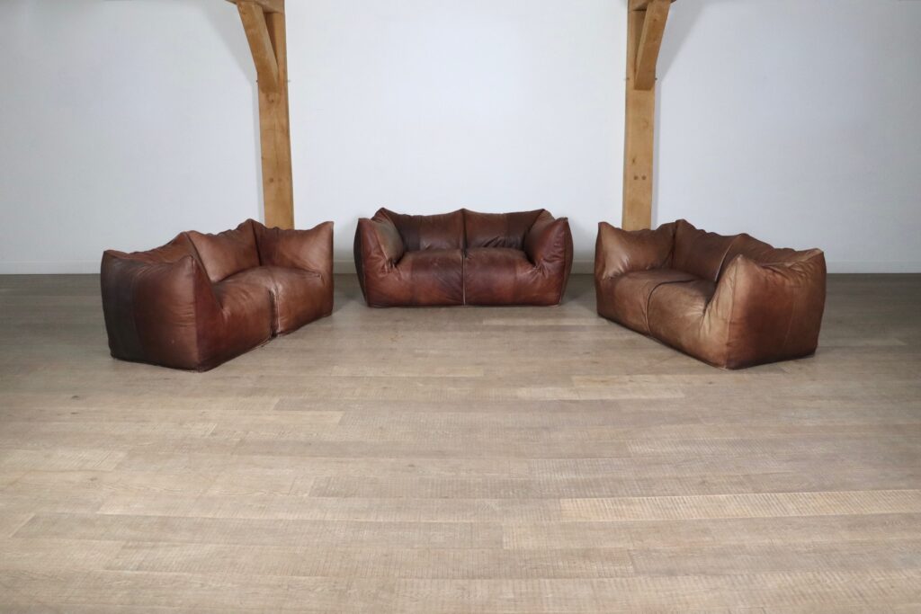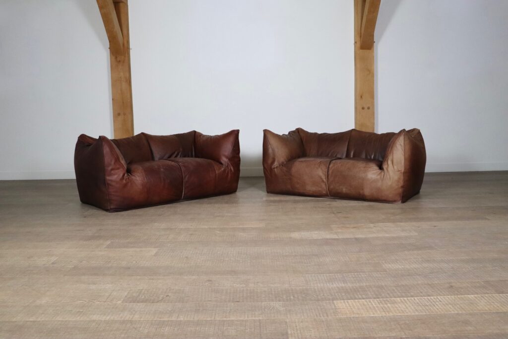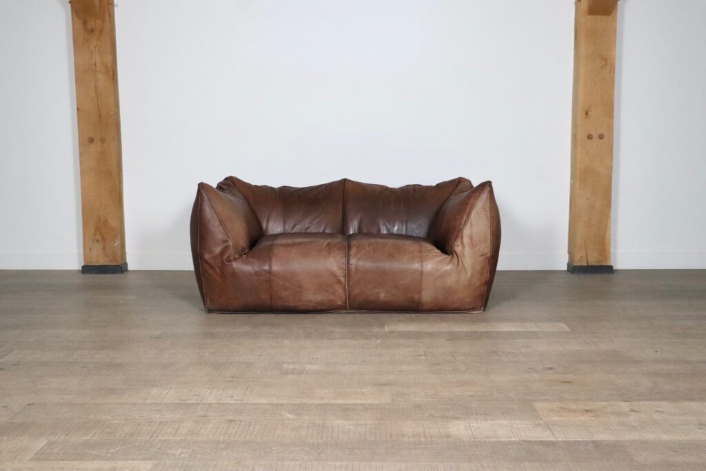 Fantastic “Le Bambole” two seater sofa designed by Mario Bellini for B & B Italia in the 1970s. A beautiful edition in its original high quality light brown buffalo neck leather with nice overall patina and a beautiful texture. These elements are marked with the species of leather It is made from: The Gran Zebu, a leather kind known for its sturdy and high quality. Besides the outstanding comfort this iconic sofa is famous for its timeless looks. The ‘Le Bambole’ collection was awarded the 1979 ‘Compasso d’Oro’ award. An example of Le Bambole is included in MoMA’s permanent collection.