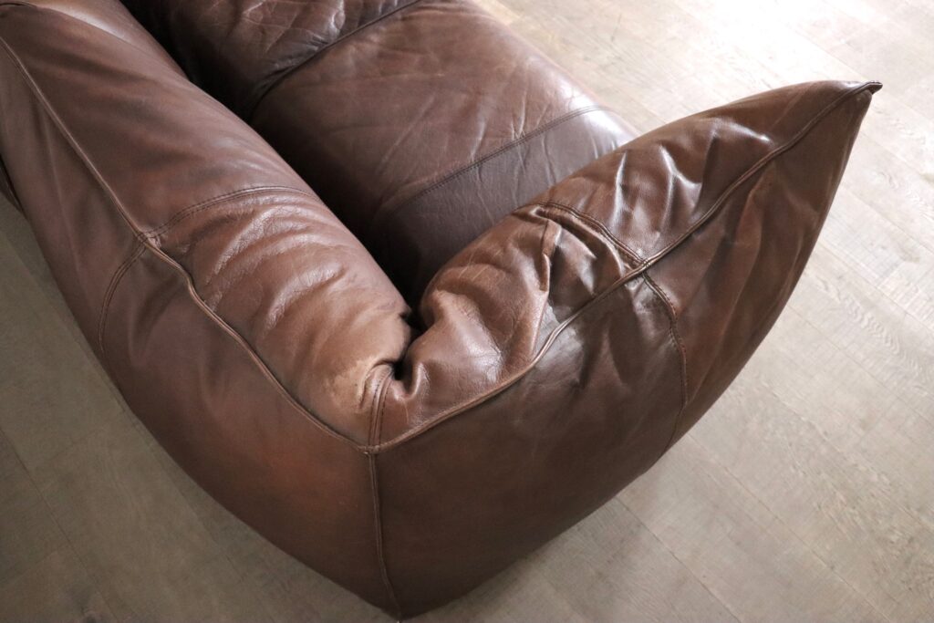 Le Bambole two seater sofa in original light brown buffalo leather by Mario Bellini for B&B Italia, 1970s