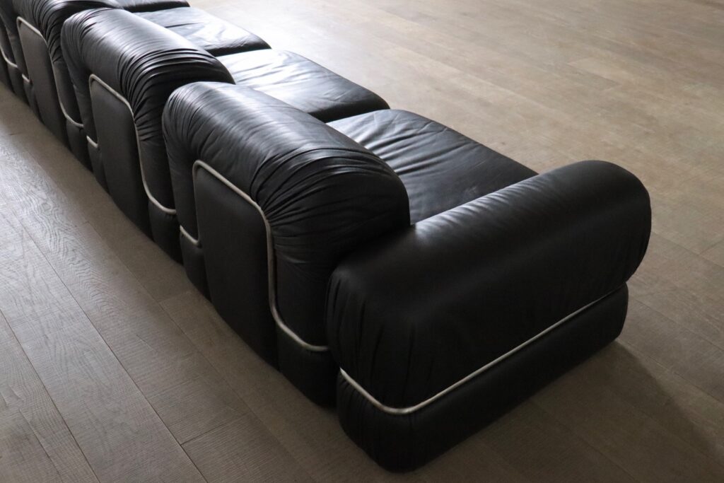 The piece embodies the ideals of 1960s Italian design, combining comfort with an architectural modular structure. Its versatility makes it suitable for both residential and curated interior settings, while its sculptural quality allows it to stand as a statement piece within a space.