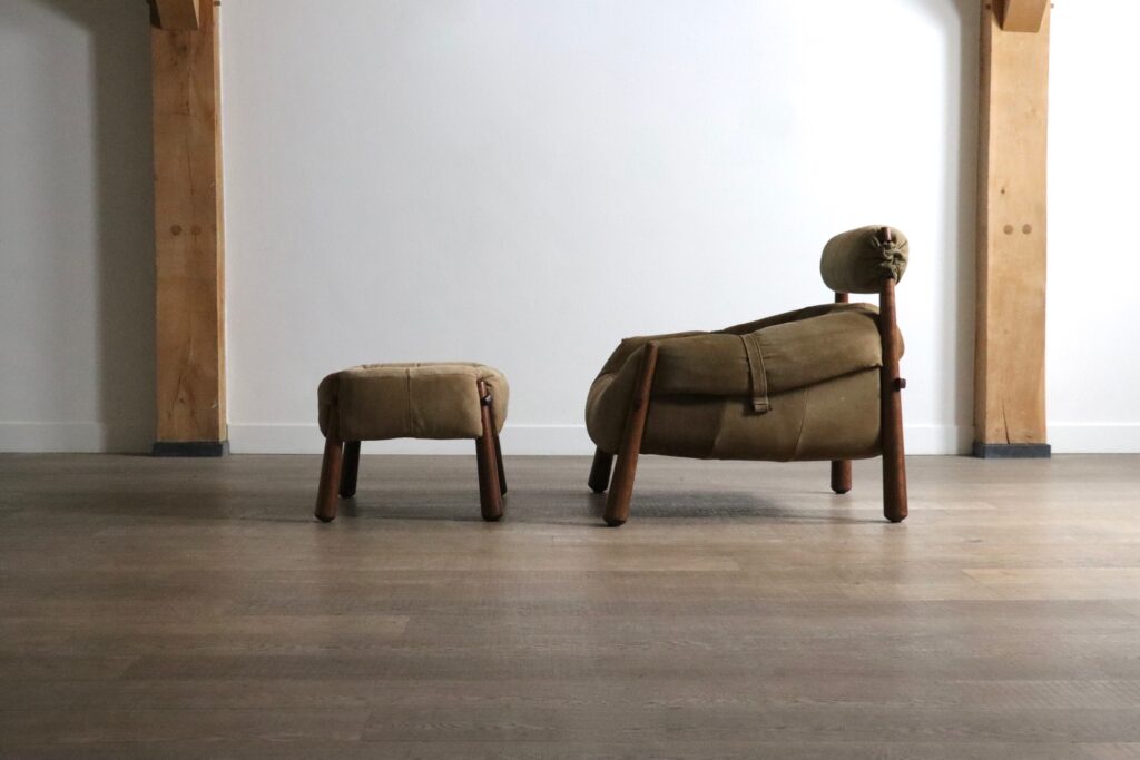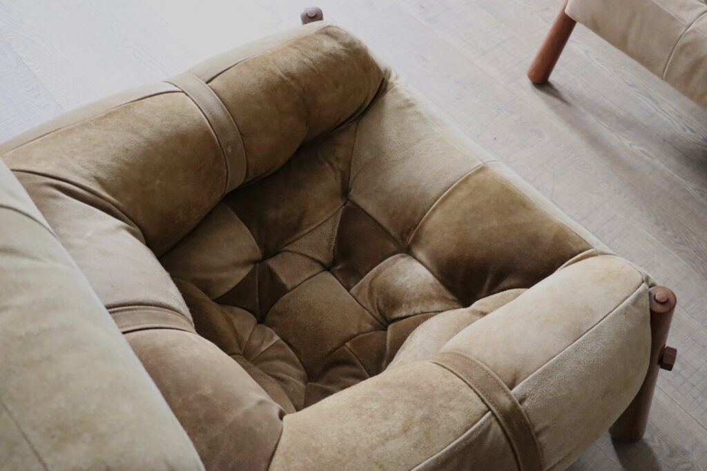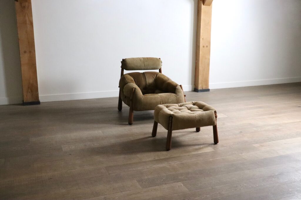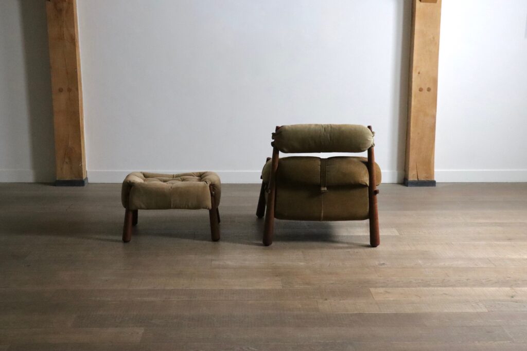 Incredible MP-81 Lounge chair with ottoman in suede by Percival Lafer, Brazil 1970s