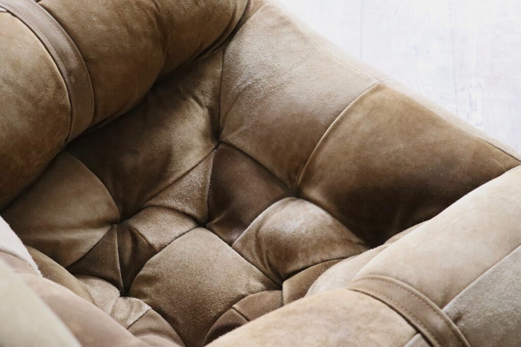 This set comes in its original suede with several tones of green and beige, creating character and an interesting look in different lighting. This design is a highly sought after model which combines comfort and breathtaking design.
