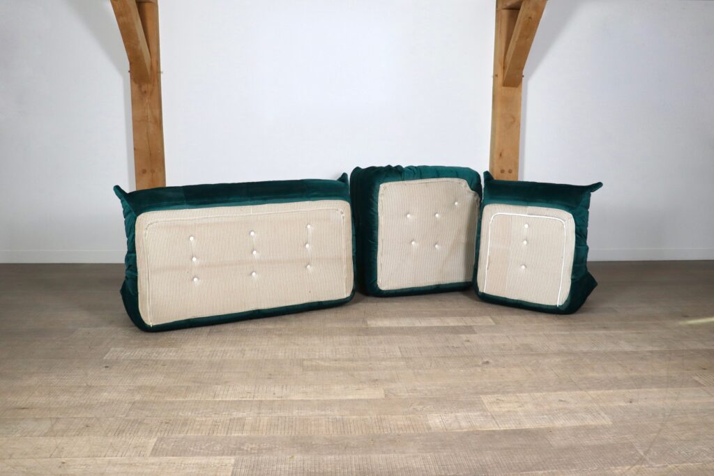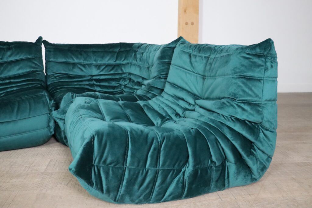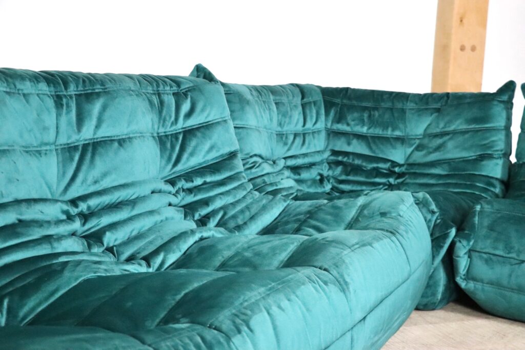 Original Ligne Roset Togo sofa set in petrol velvet by Michel Ducaroy, 1970s