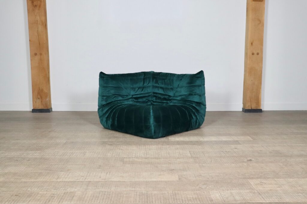 Incredible Ligne Roset Togo sofa set in petrol velvet upholstery by Michel Ducaroy, 1970s. This iconic design has become more and more popular over the years. The lightweight design combined with fun colors and materials make these seating elements a musthave for anyone who loves design! The high comfort of this ultimate lounge chair is unmatched and will make sure you never want to get out. The beautiful color and texture of the velvet makes this design stand out even more!