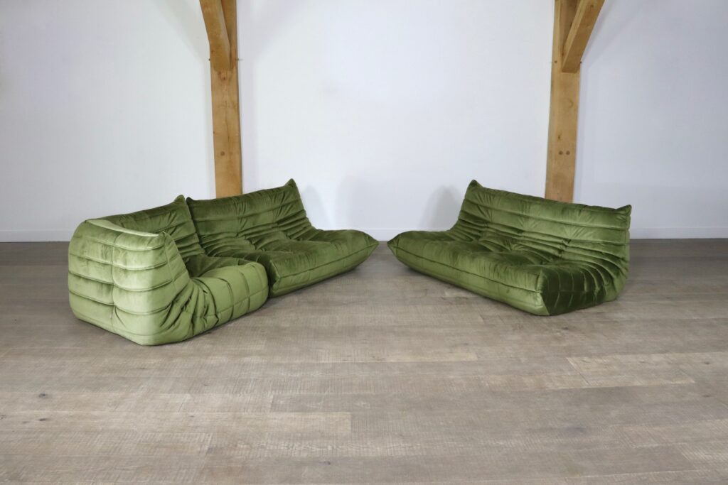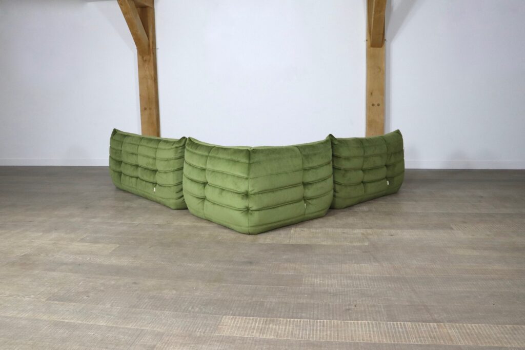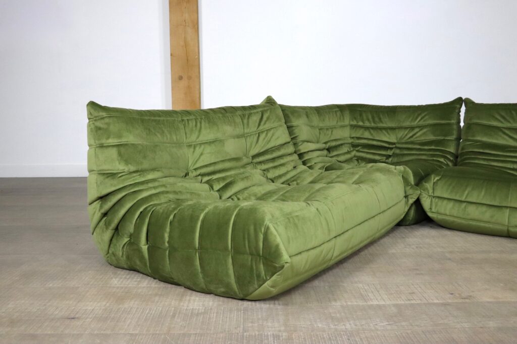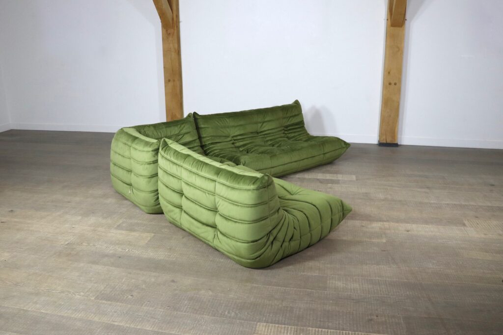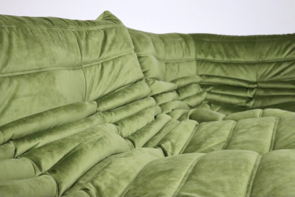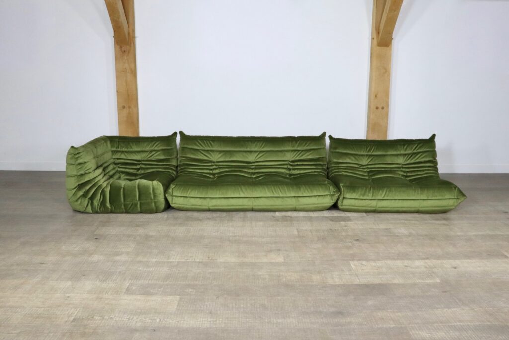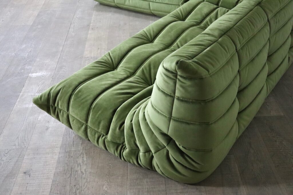 Original Ligne Roset Togo set in olive green velvet by Michel Ducaroy, 1970s