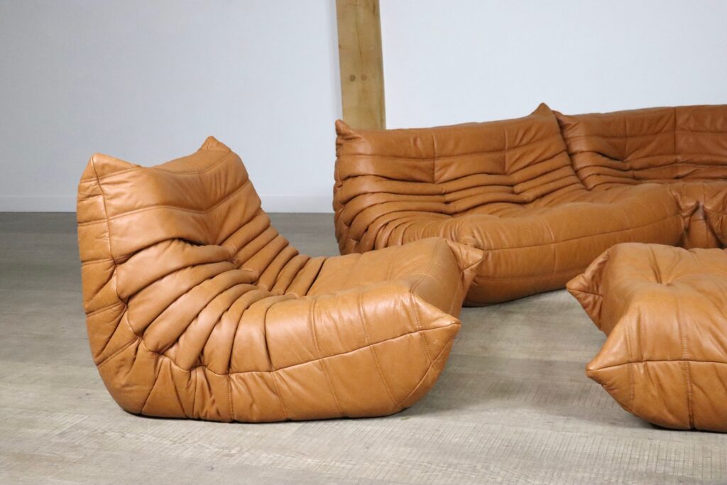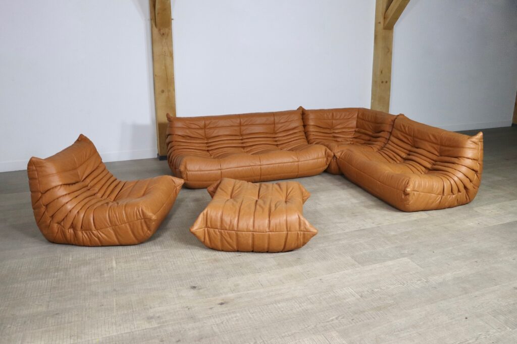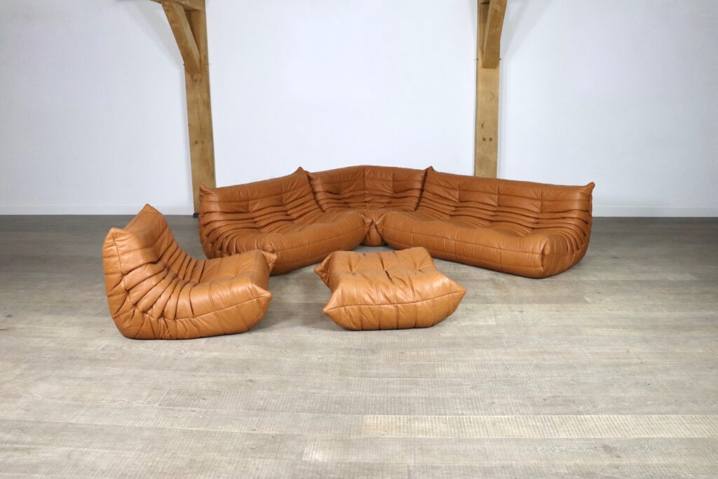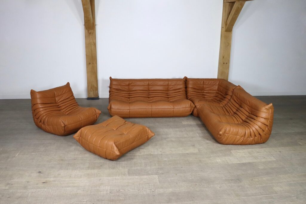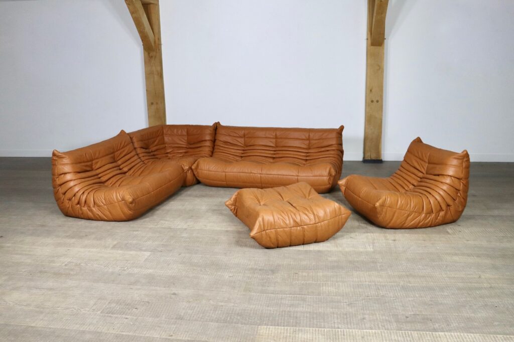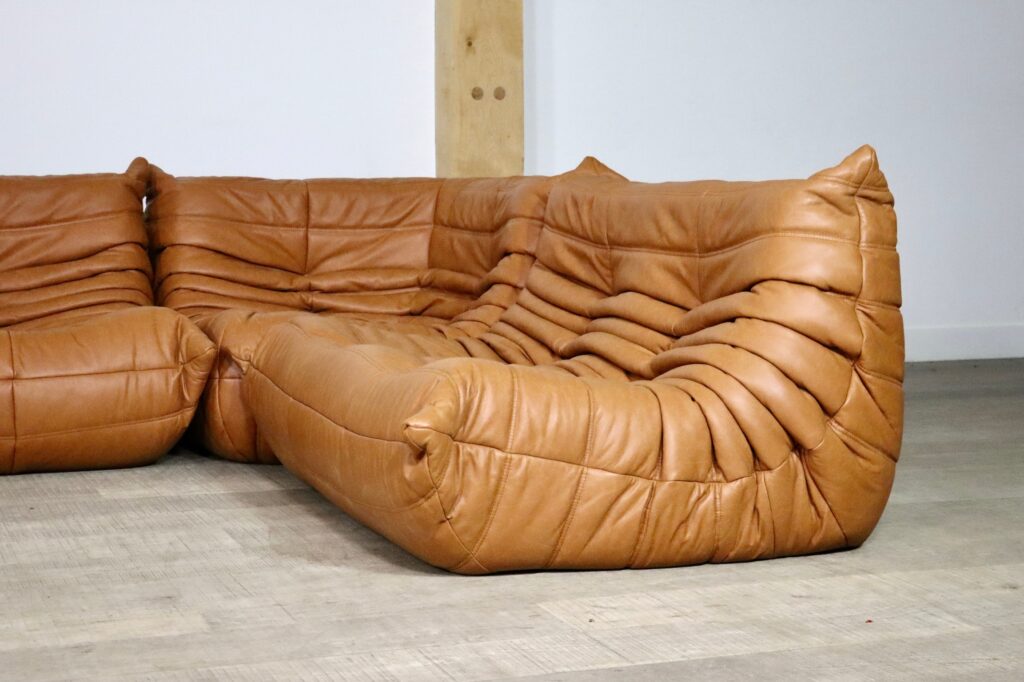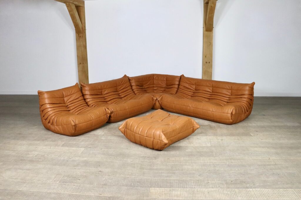 Original Ligne Roset Togo sofa in cognac leather by Michel Ducaroy