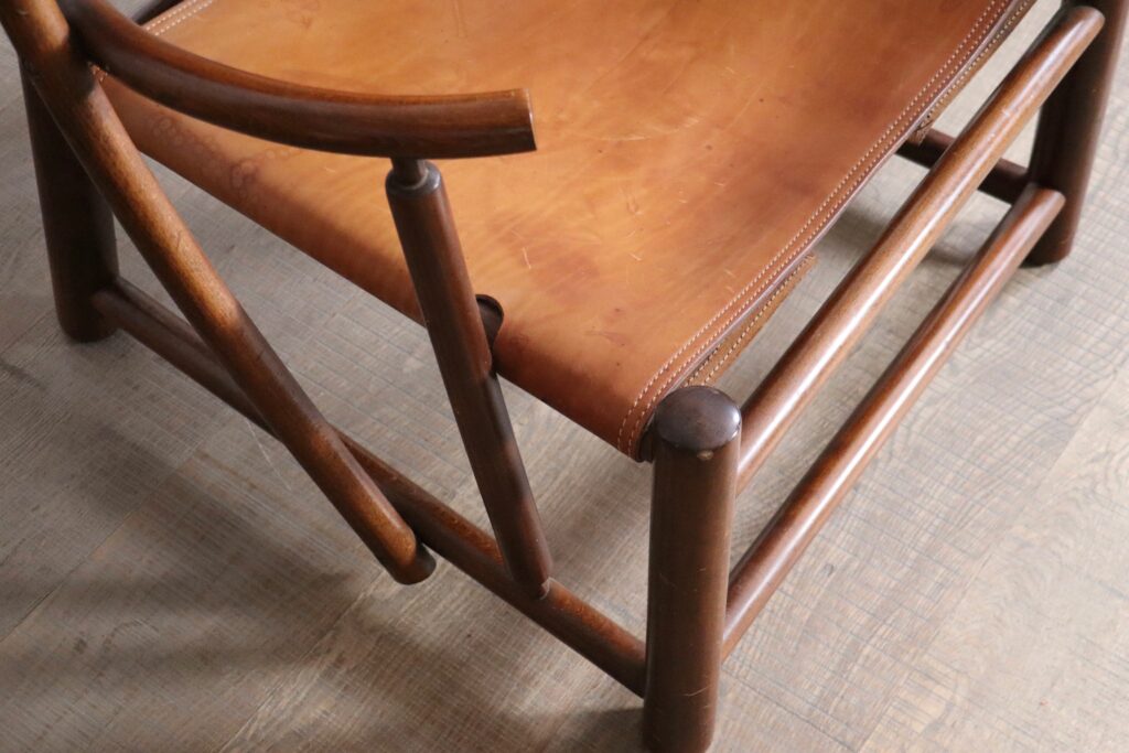 These beautiful chairs were produced by Germa in 1972 and became known as the ‘Hoop’ chair. This high quality chairs, with steam bent beech frame, have beautiful detailed design: all the way from the front legs to the rear, and upholstery which was pulled over the frame and laced up on the bottom. Any space will be elevated by its stunning and organic design.