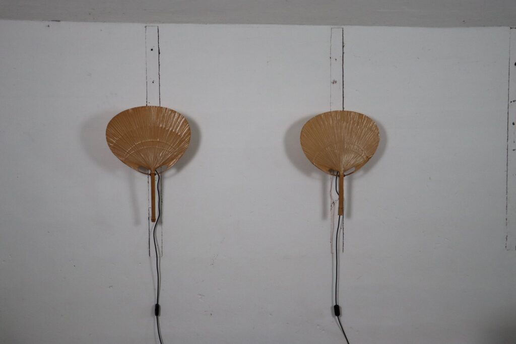 Incredible pair of Uchiwa II wall sconces designed by Ingo Maurer for M-Design, Germany 1973.