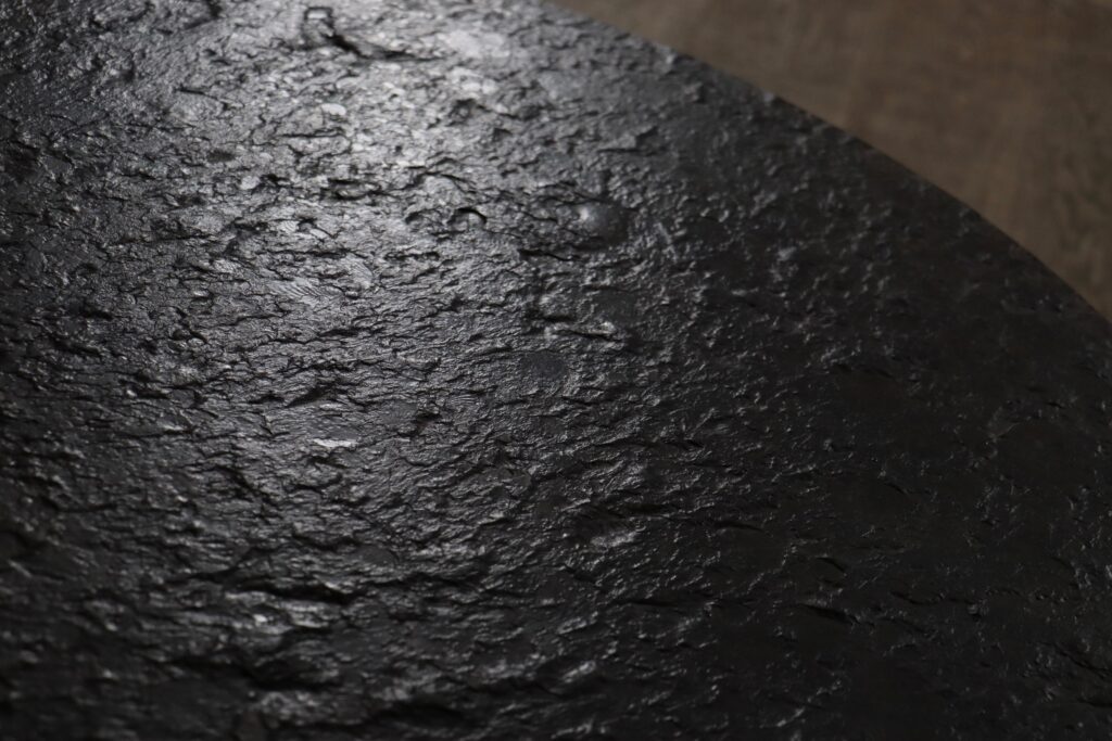 A striking design which is defined by its fossil stone top, each surface carrying natural imprints that give the piece a quiet sense of depth and variation. No two examples are alike, making the material both distinctive and restrained in its expression.