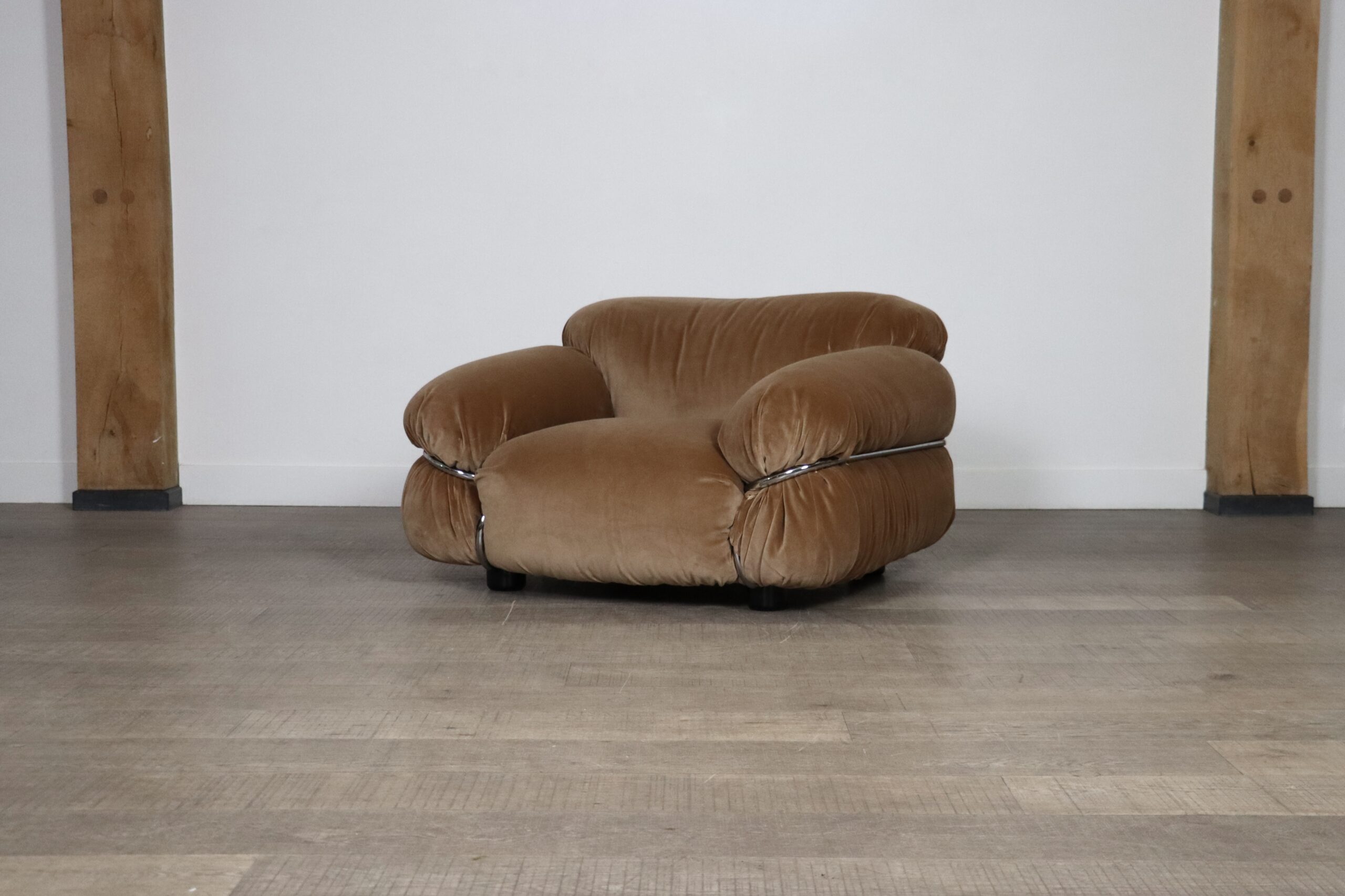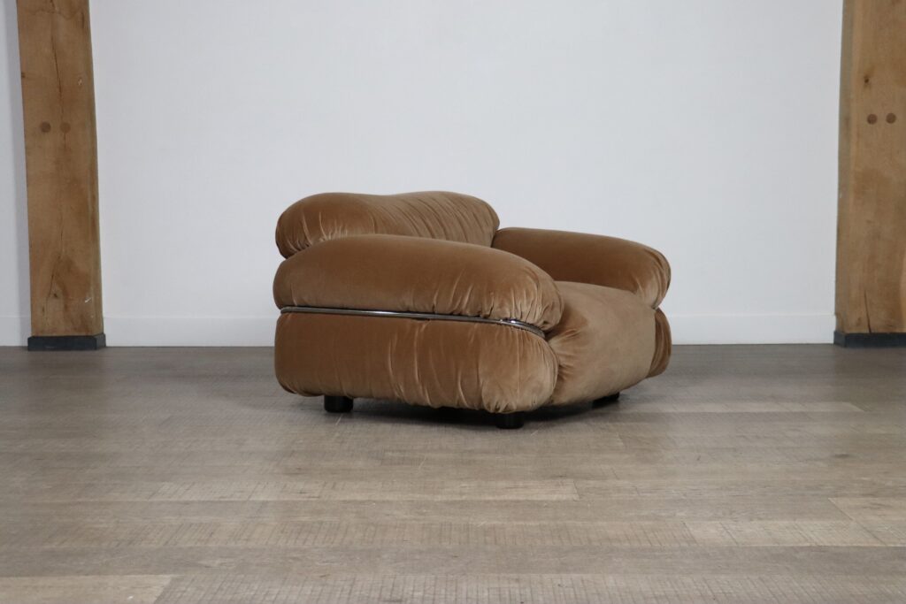 Sesann Lounge chair by Gianfranco Frattini in velvet for Cassina, Italy 1969