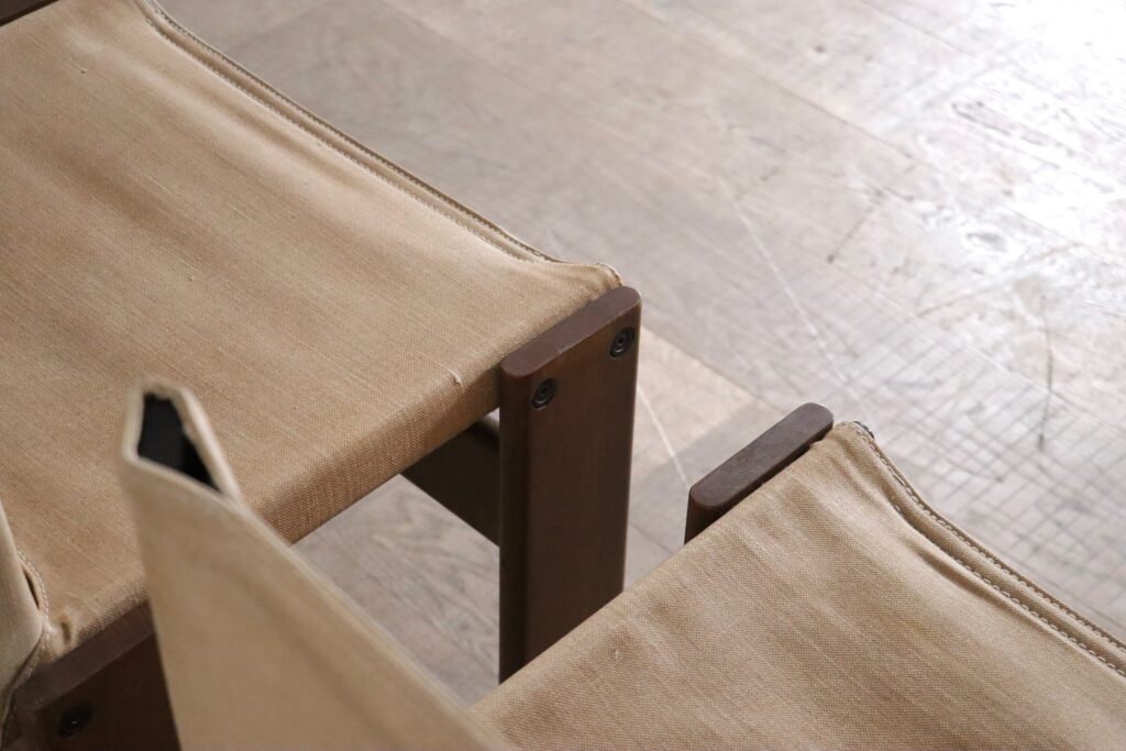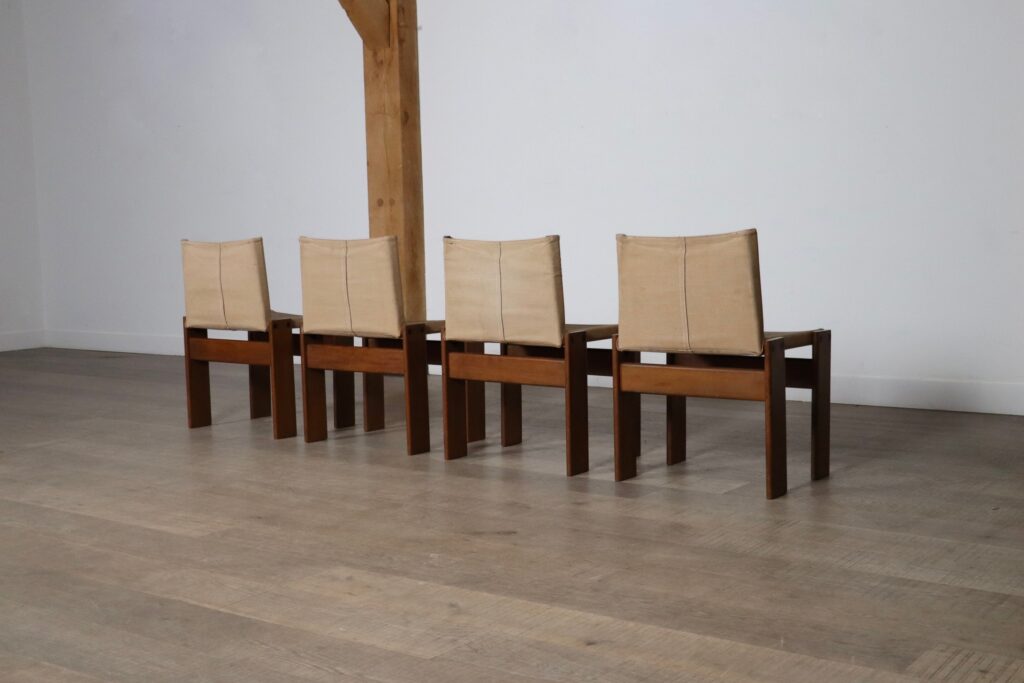 Nice set of 4 ‘Monk’ chairs in canvas and walnut, designed by the renowned duo Afra and Tobia Scarpa for Molteni in Italy, 1974.