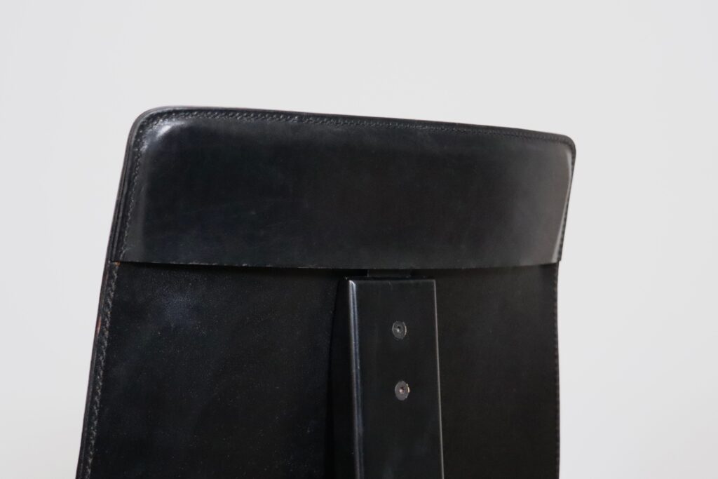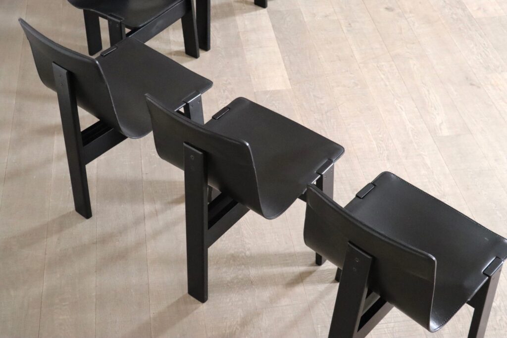Set of 6 ‘Tre 3’ chairs in black leather by Angelo Mangiarotti for Skipper, Italy 1970s